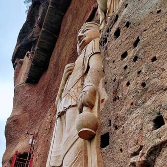 “中国四大石窟”之一的甘肃天水麦积山石窟,始建于十六国后秦工夫,以其考究的泥塑艺术著称于世。