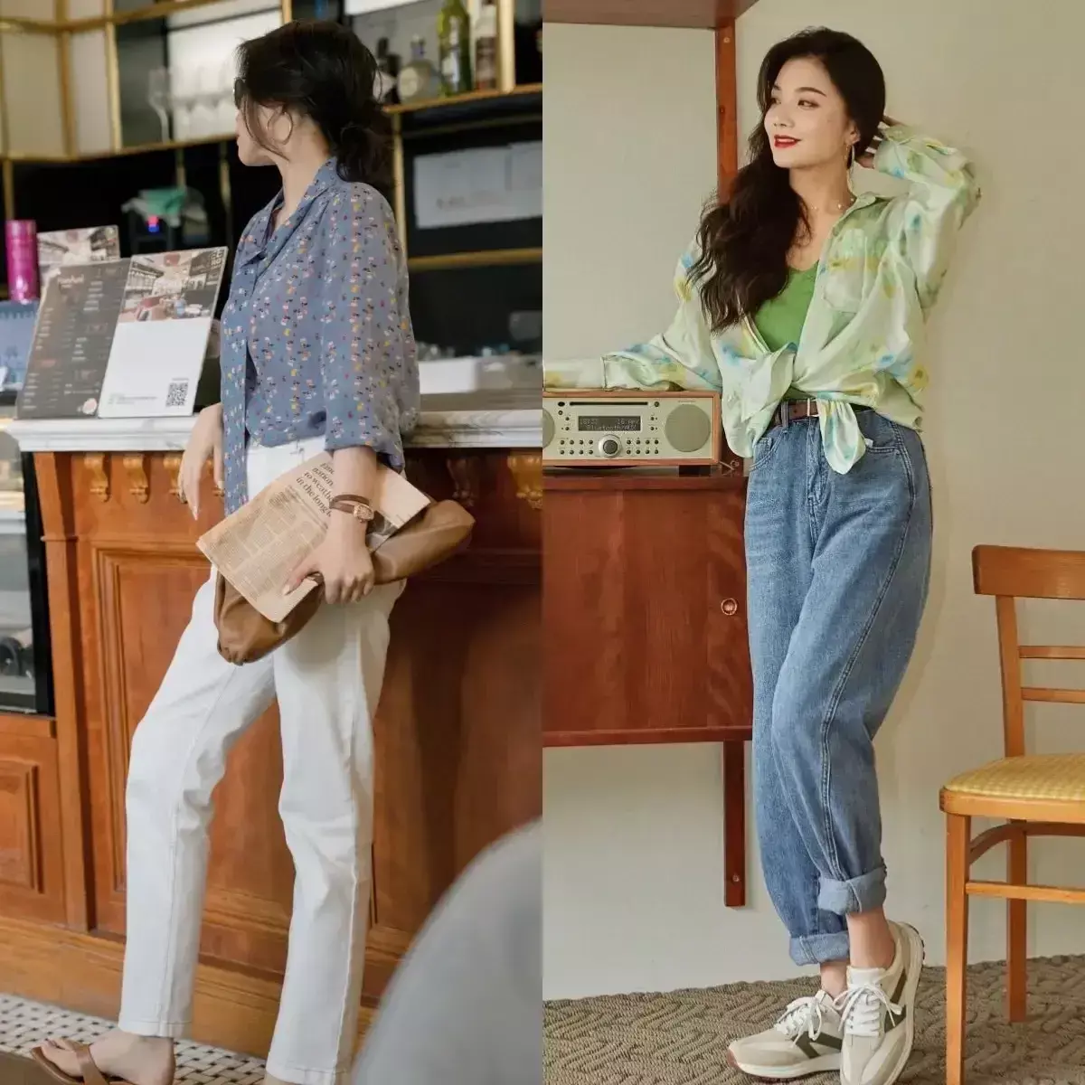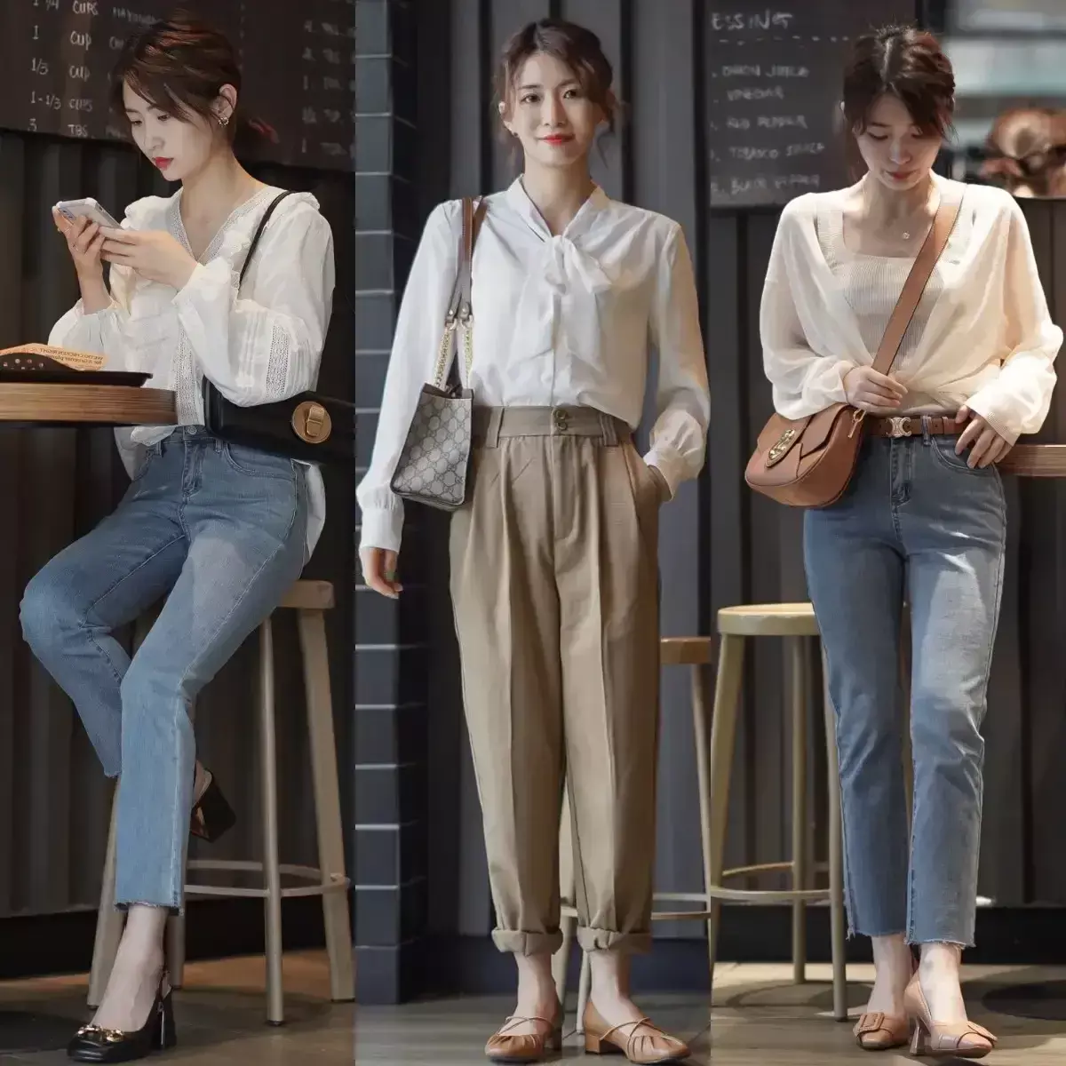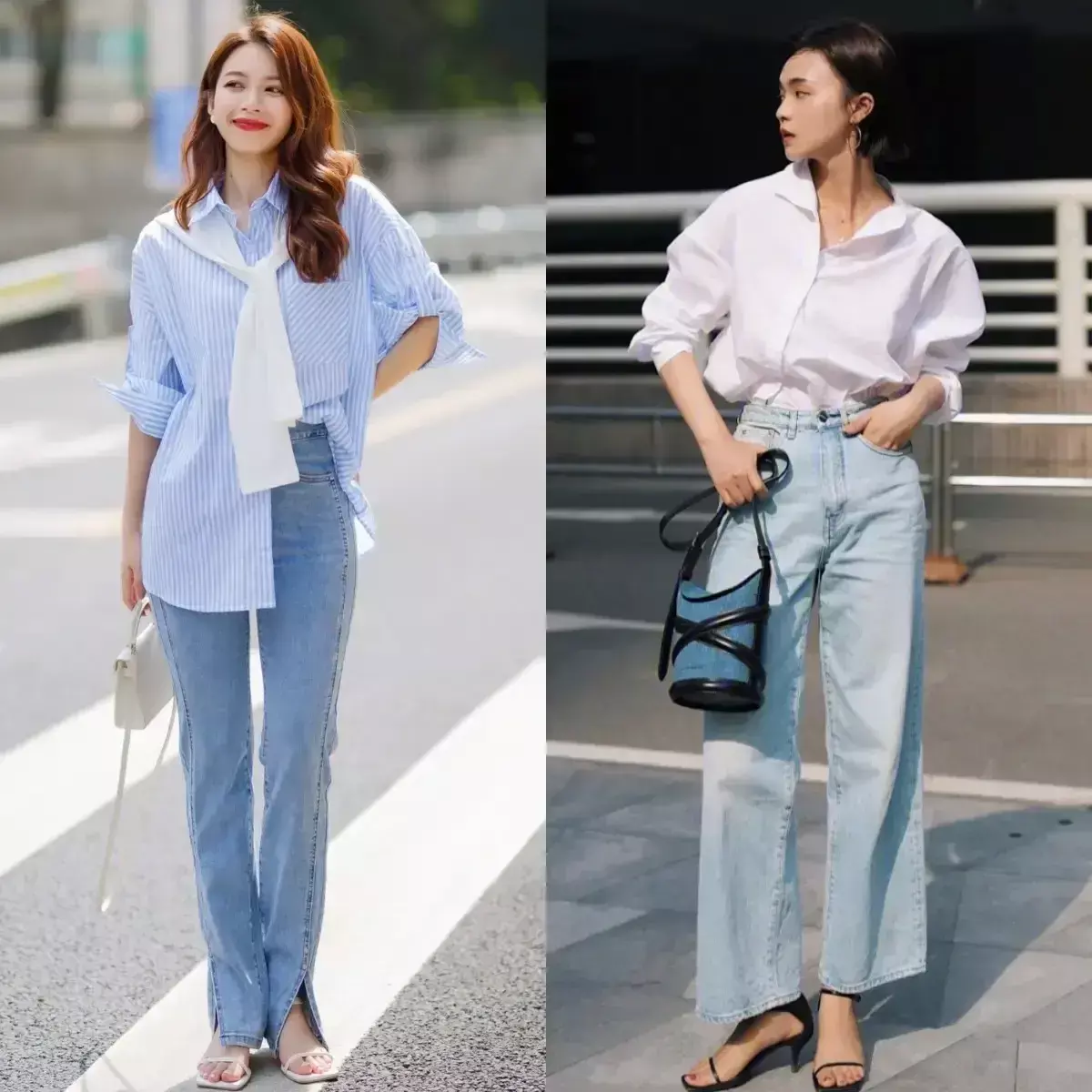 牛仔穿戴面料天生就领有前卫元素,无论和任何穿戴单品进行组合搭配齐很悦目,你可以像底下这位博主不异用白色衬衫搭配上牛仔裤,或者是用牛仔衬衫和牛仔裤进行组合搭配,这么的穿衣作风复旧又洋气。