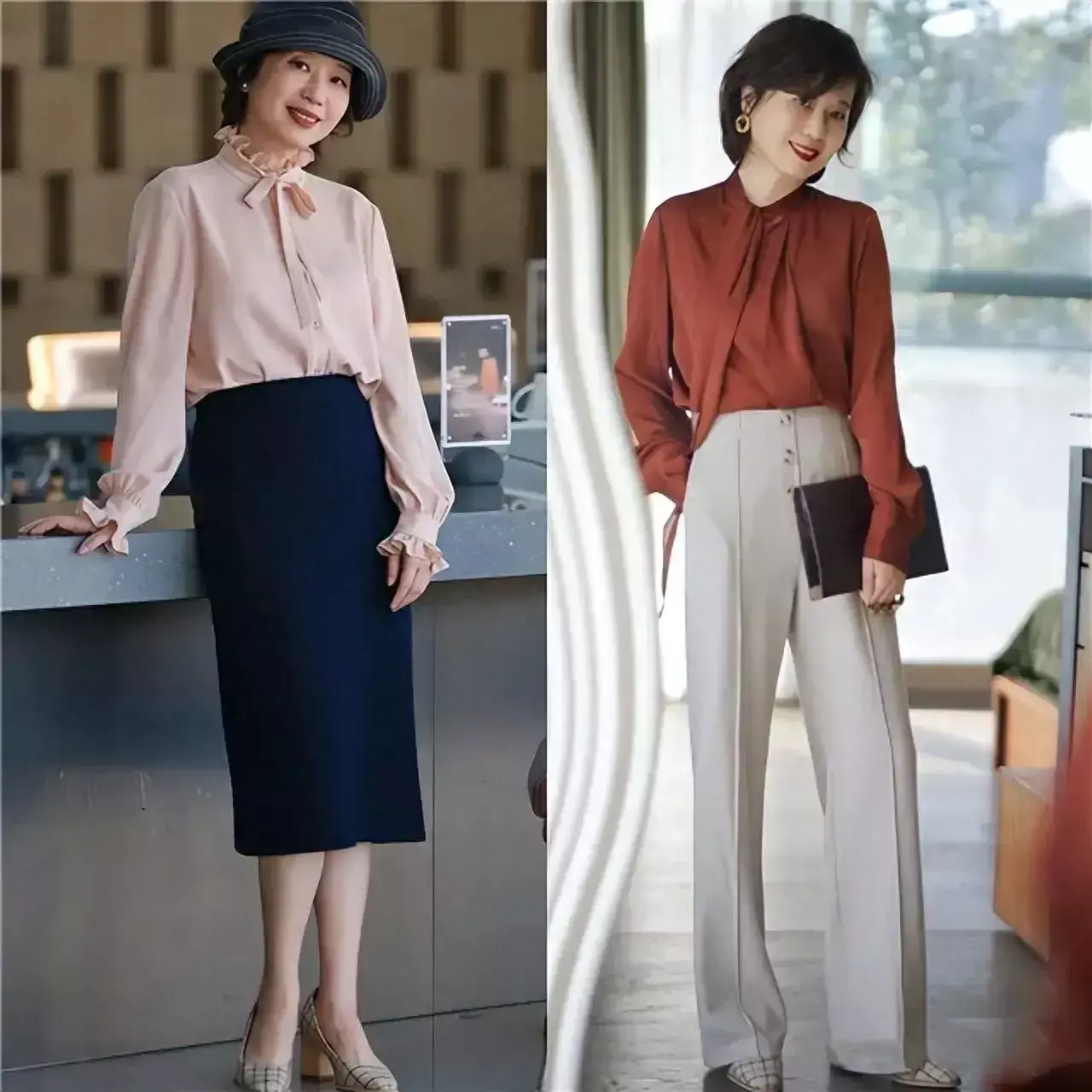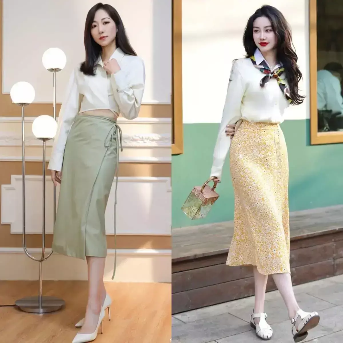 ③,雪纺衬衫搭配上直筒半身裙