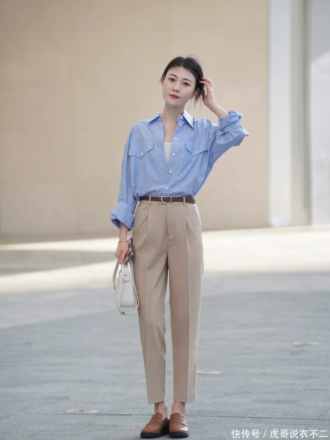烟管裤的裤型介于直筒裤与紧身裤之间,上宽下窄的策画省略很好地修饰大腿线条,同期突显小腿的纤细。选定深色系的烟管裤,如玄色、深灰色或藏蓝色,不仅显瘦成果一流,还能增添几分干练与千里稳。搭配上一件精辟的白衬衫或诚恳衫,就能简易打造出职场女性的专科形象。