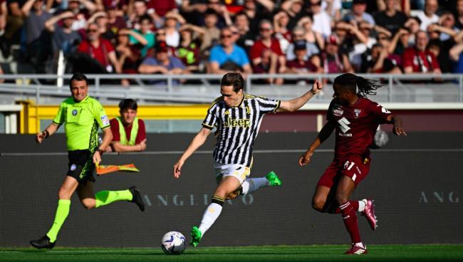 尤文首发:1-什琴斯尼、3-布雷默、4-加蒂(12-桑德罗)、6-达尼洛、27-坎比亚索(90+5‘ 26-阿尔卡拉斯)、5-洛卡特利、11-科斯蒂奇(65’ 17-伊令)、16-麦肯尼、25-拉比奥特、7-基耶萨(65‘ 15-伊尔迪兹)、9-弗拉霍维奇(78’ 18-基恩)
