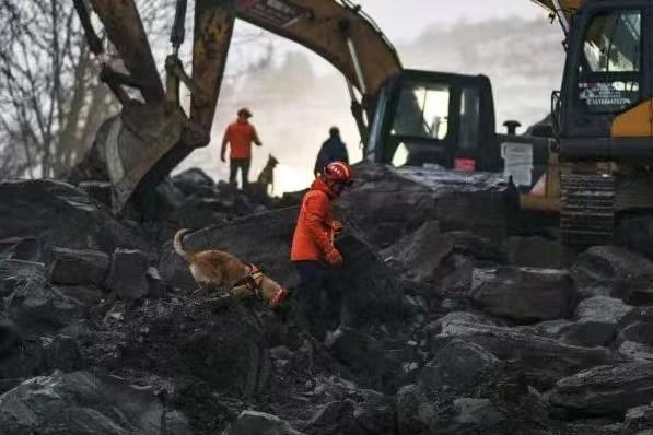 △王坤与三丰在云南镇雄“1·22”山体滑坡现场搜寻